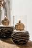 La lampe à huile ronde élégante en laiton champagne (modèle L) est le plus grand modèle de la collection et rayonne d'une élégance pure. Son verre transparent couleur champagne est rehaussé d'un porte-mèche en laiton qui ajoute une touche de luxe subtile. Sa forme ronde sublime la douce lueur de la flamme.
