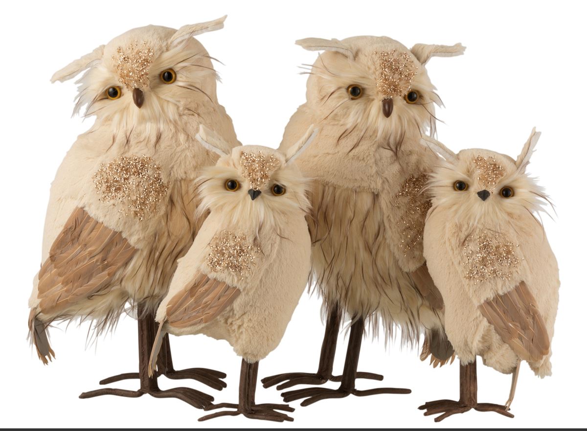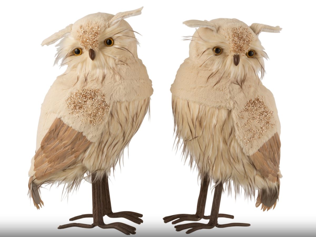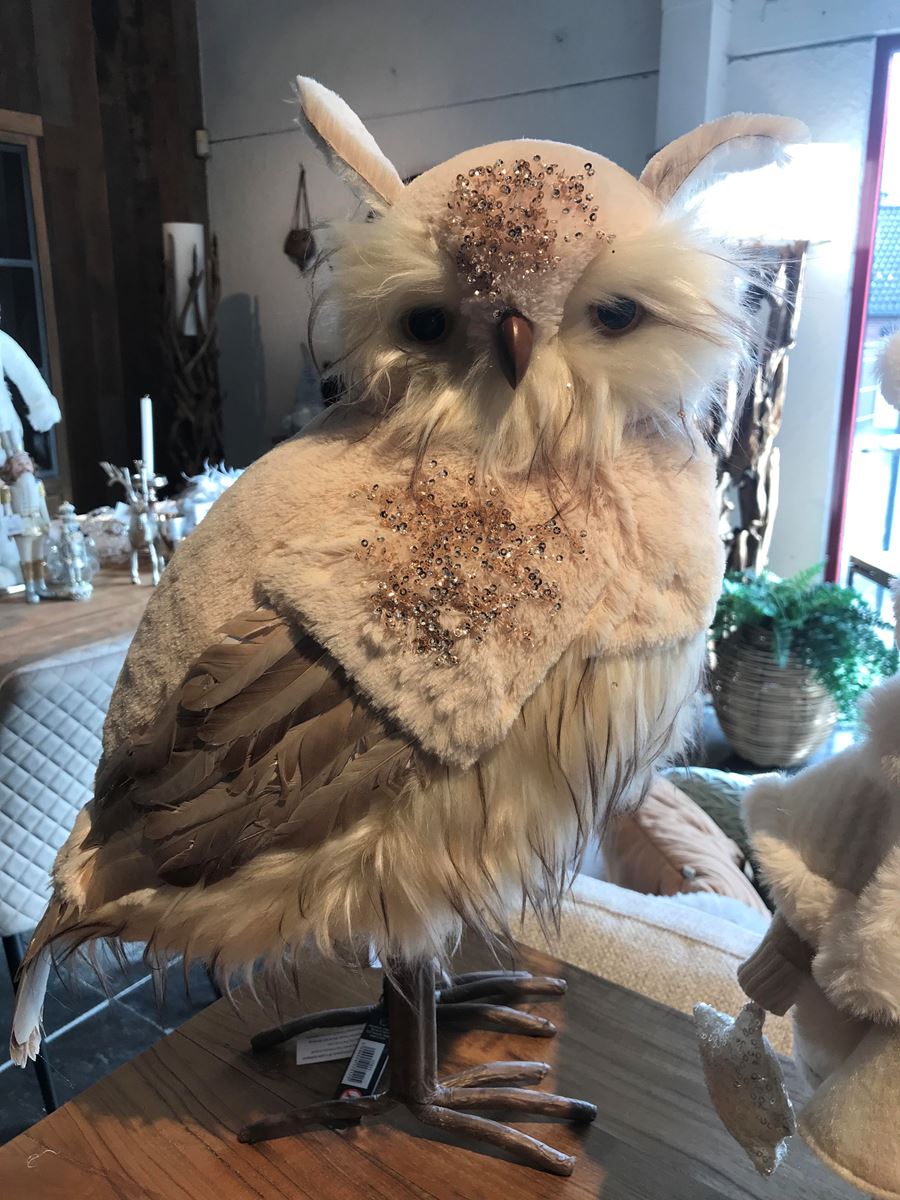 Chouette Peluche Paillettes Beige/Marron