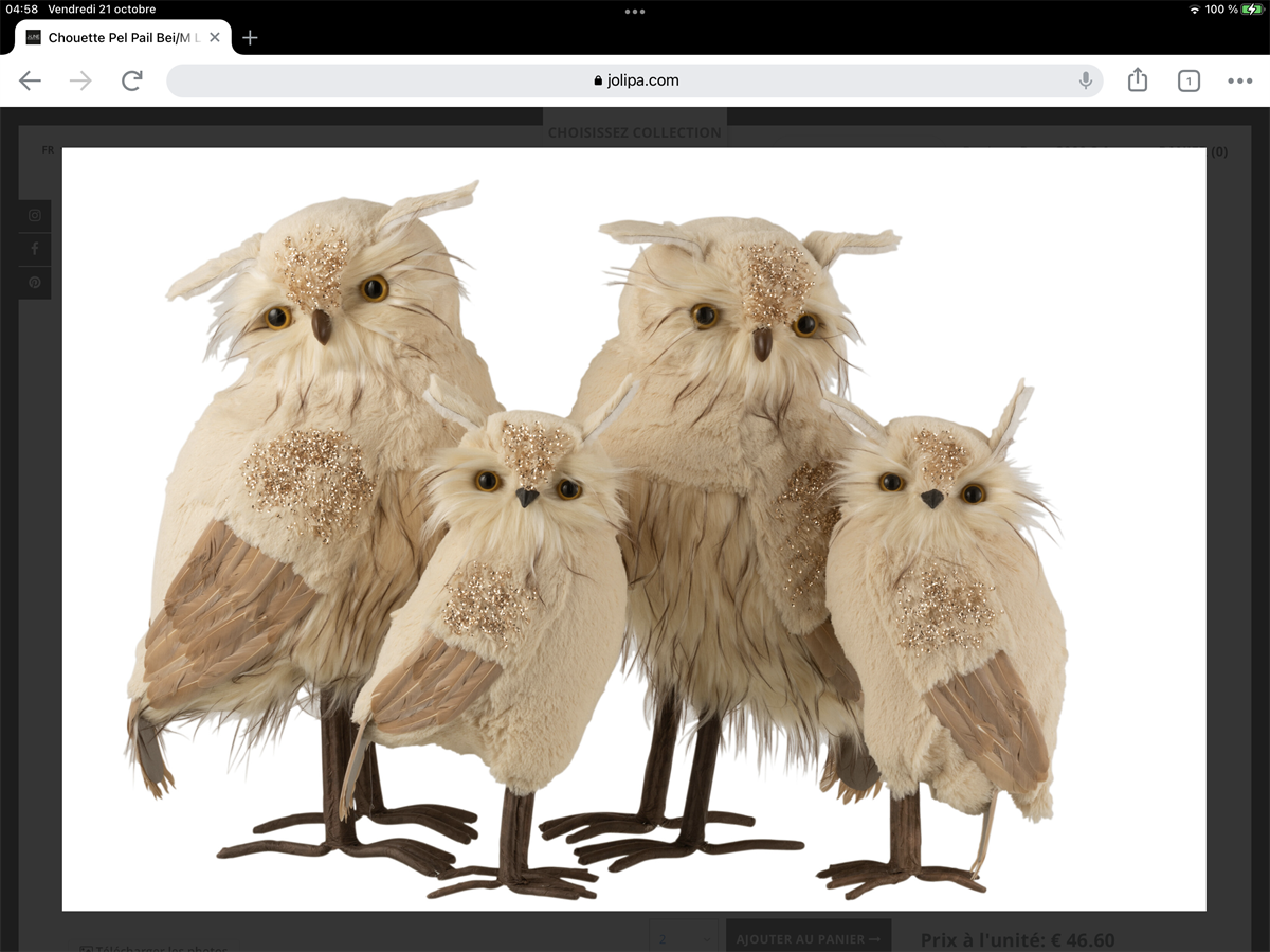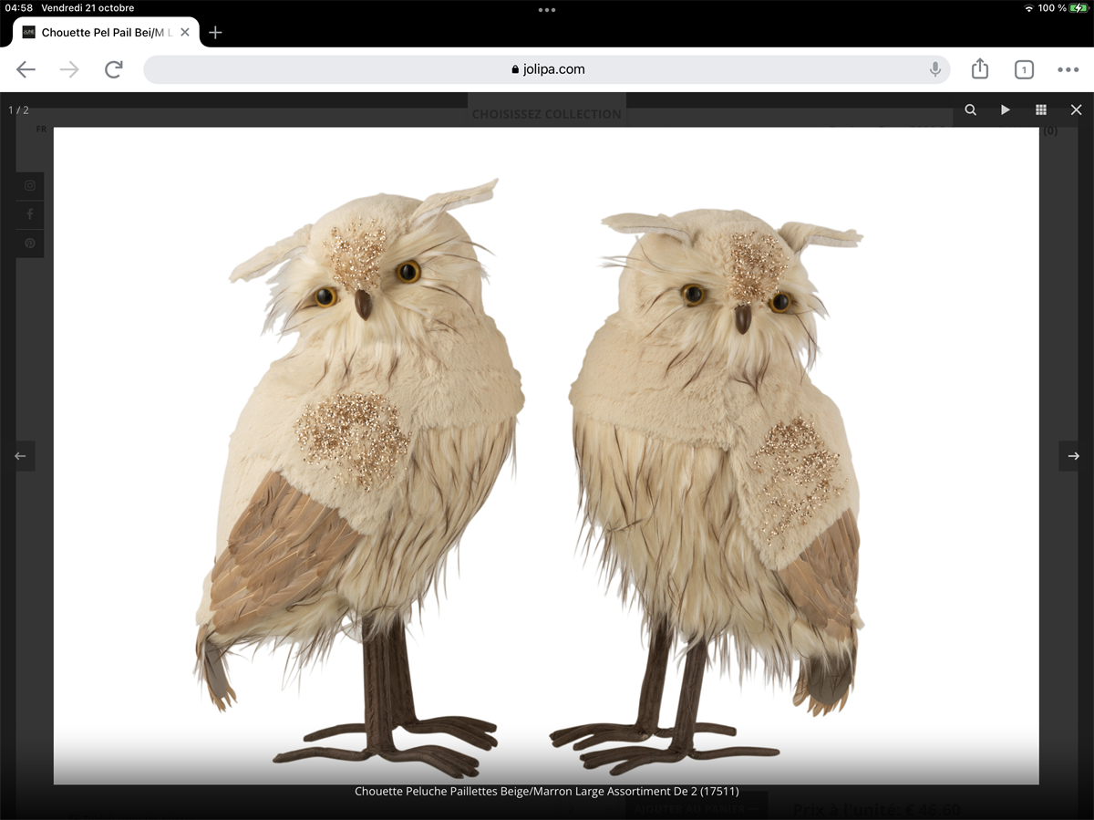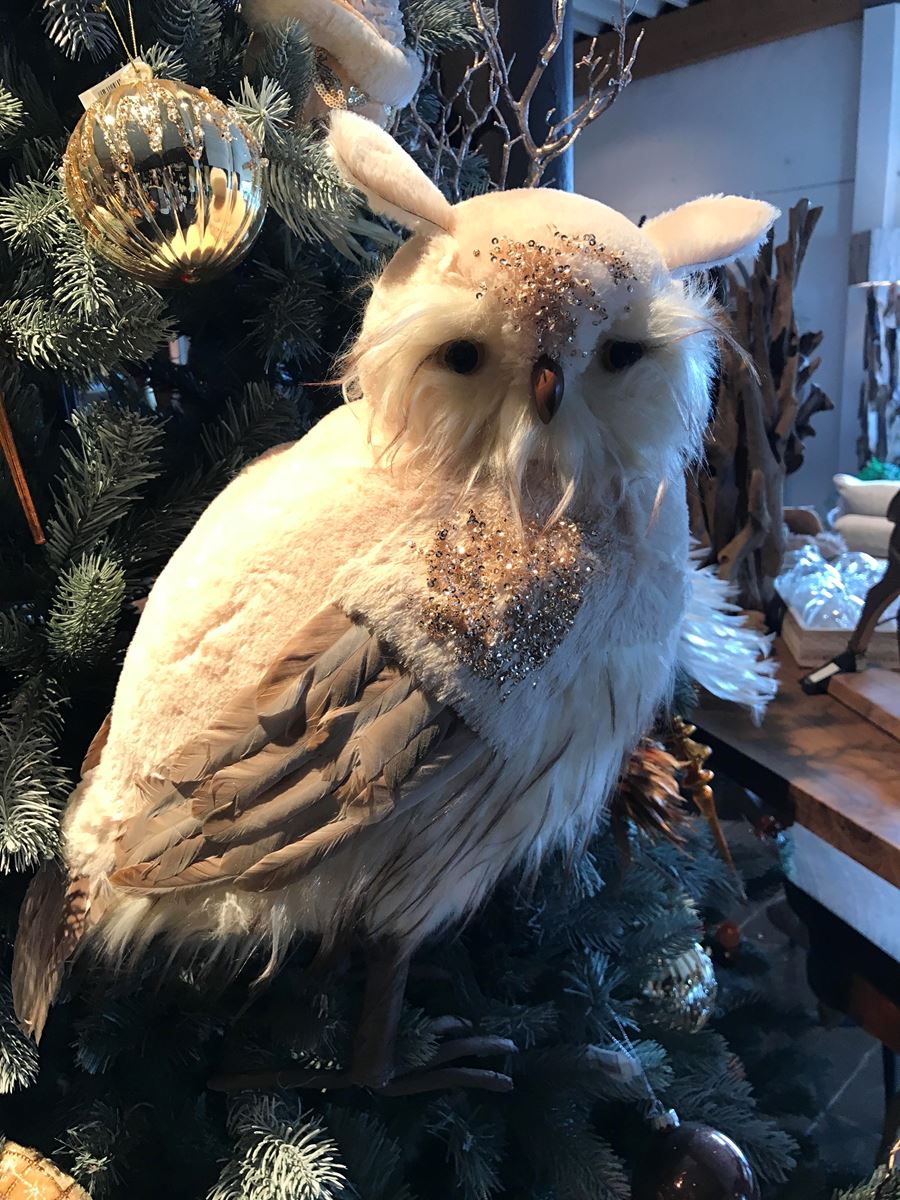 Chouette Peluche Paillettes Beige/Marron