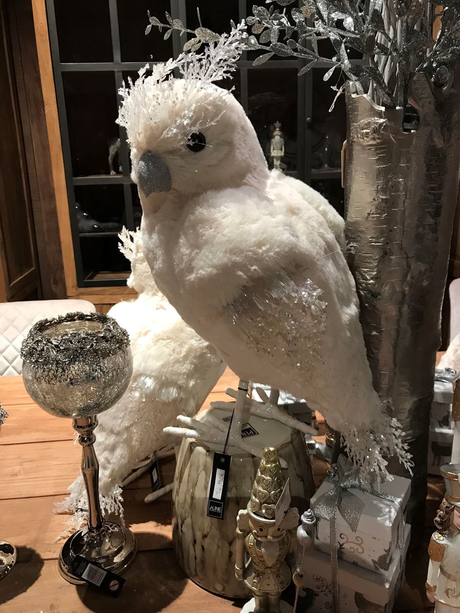 Hibou Debout Textile Paillettes Ecru