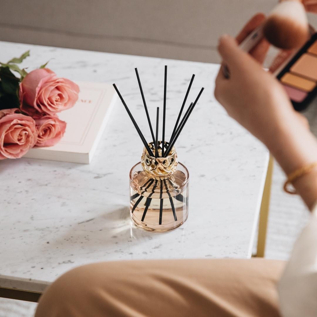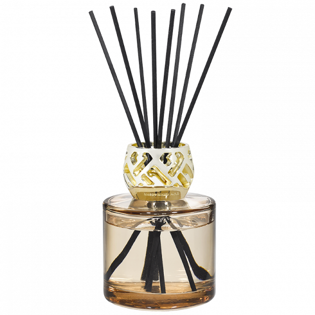 Le Bouquet parfumé Senso Fleurs de Musc déploie des trésors de séduction avec son design épuré, signé Rozenn Mainguené. Son coloris neutre, plutôt nude, invite au calme et à la détente tout en s’intégrant à merveille dans votre environnement. Cette teinte donne de l’allure à votre décoration, illumine la pièce et lui apporte un effet naturel et cosy, renforcé par la transparence de l’objet qui apporte de la perspective. La bague dorée bombée apporte une certaine prestance à l’ensemble et reprend le motif déjà présent sur la monture de la lampe à catalyse, dans une volonté d’uniformité de la collection. Ce Bouquet parfumé Senso Fleurs de Musc se distingue aussi par son parfum féminin aussi fleuri que sensuel. La tubéreuse et l’iris se mélangent à l’ylang-ylang et au jasmin, pour un effet des plus envoûtants. Les notes solaires de mandarine viennent sublimer cette composition olfactive, avant de s’achever sur le musc blanc, enveloppant. Délectez-vous de cette atmosphère apaisante.
