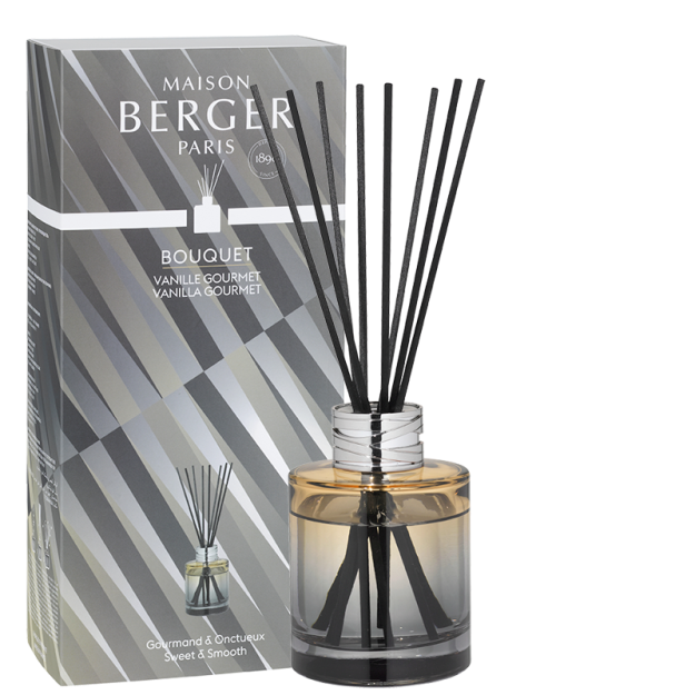 Dans la lignée de l’audacieuse collection Dare, interprétée par le designer Anthony Gambus, retrouvez le Bouquet parfumé Dare Vanille Gourmet. Bien que tout à fait classique par sa forme, cet objet se trouve magnifié par un dégradé coloré contemporain gris et nude, plein de douceur et d’élégance. Ces tonalités neutres et sobres peuvent s’associer à d’autres, plus vives, permettant ainsi de nuancer et de contraster la décoration de votre maison. Cet ensemble harmonieux est réhaussé par une surbague métallique gravée de motifs rubans, véritable signature graphique de ce produit. Ce Bouquet Dare Vanille Gourmet a l’esthétisme soigné est déjà pré-rempli de parfum pour une ambiance gourmande, pleine de volupté. Il suffit d’y glisser quelques bâtonnets pour que toutes les subtilités de cette fragrance soient révélées. Les notes de rhum se conjuguent aux senteurs savoureuses de gousse de vanille ainsi qu’à celles poudrées des fèves tonka, pour un résultat tout en onctuosité.