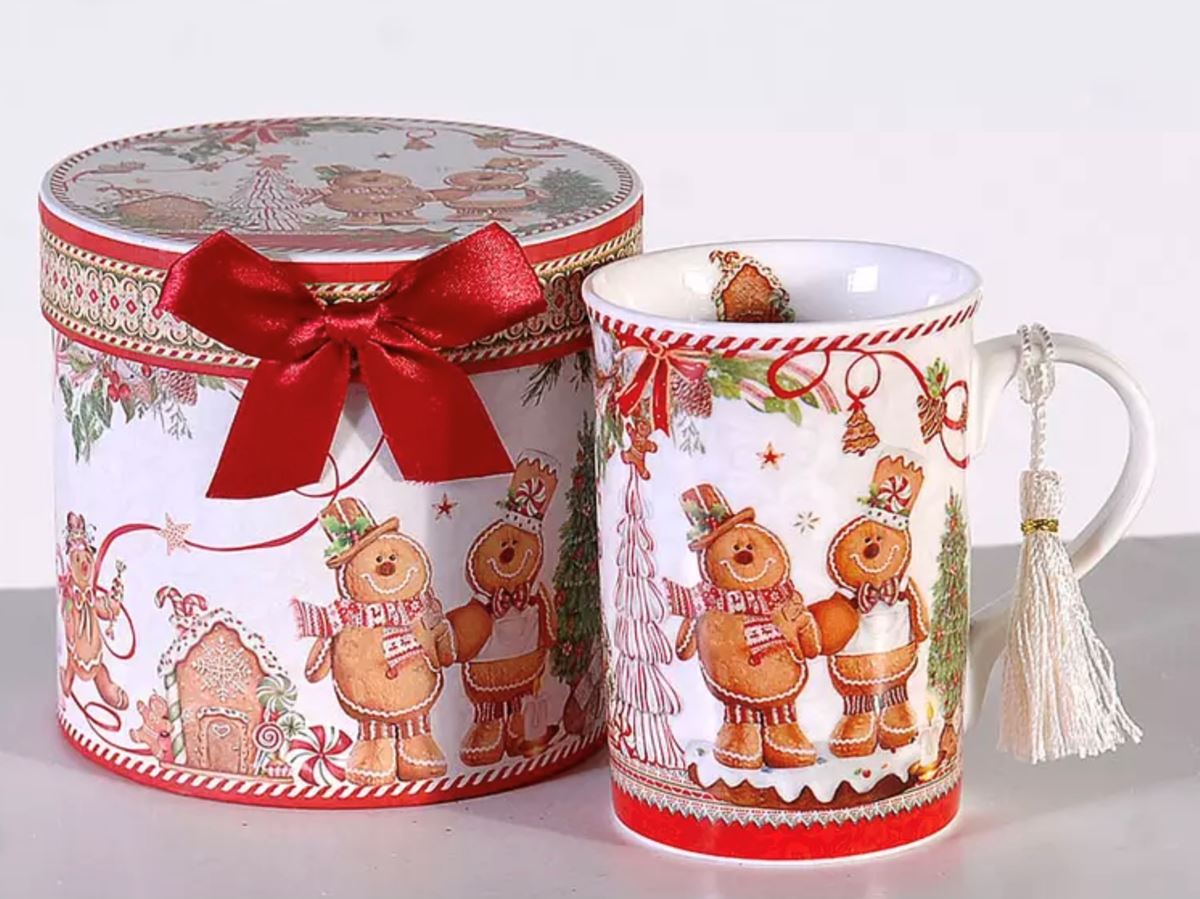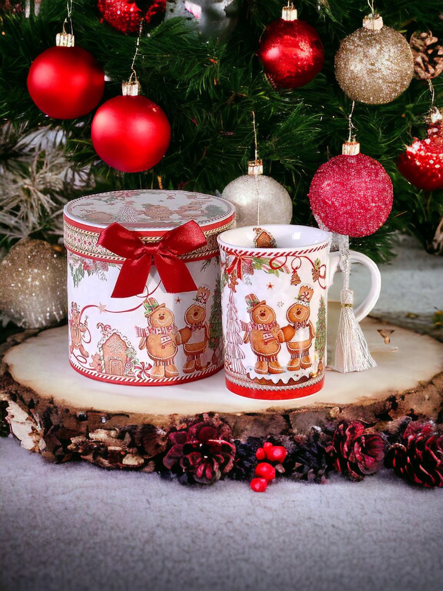 tasse 12 cm dans une boite a cadeau avec l equipage des biscuits du pere noel