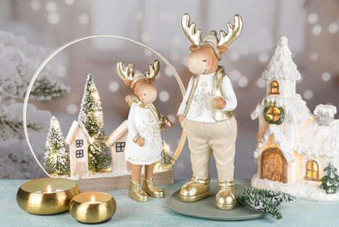 Maison d'hiver blanc, résine, LED, 18x14x29cm