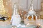 Poupée gnome assis av/jambes pendantes, blanc/or, tissu, 19x12x68cm