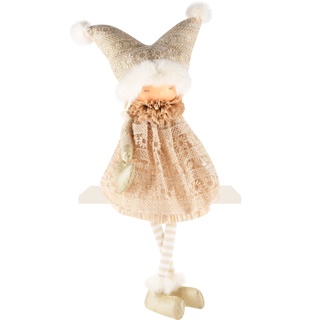 Poupée d'hiver assise avcoeur, beige, tissu, 25x19x53cm