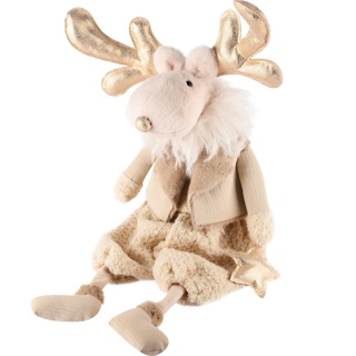 Poupée élan assis, or/beige, tissu, 28x21x65cm