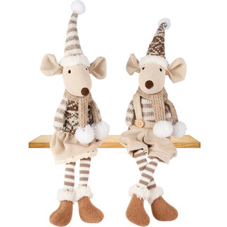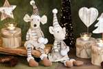 Souris assise av/jambes pendantes, beige/blanc, tissu, 8x5x43cm,