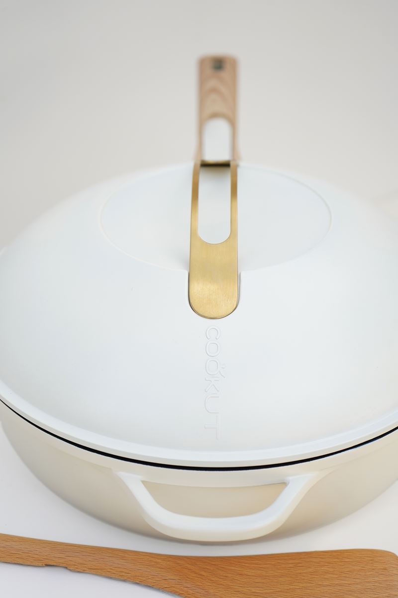 Inclus : 2 poignées détachables (une longue et une courte), un panier vapeur et une spatule en bois.