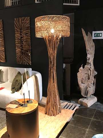 lampe en teck avec abat jour 65 cm