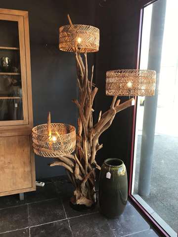 lampe en teck avec 3 abat jour