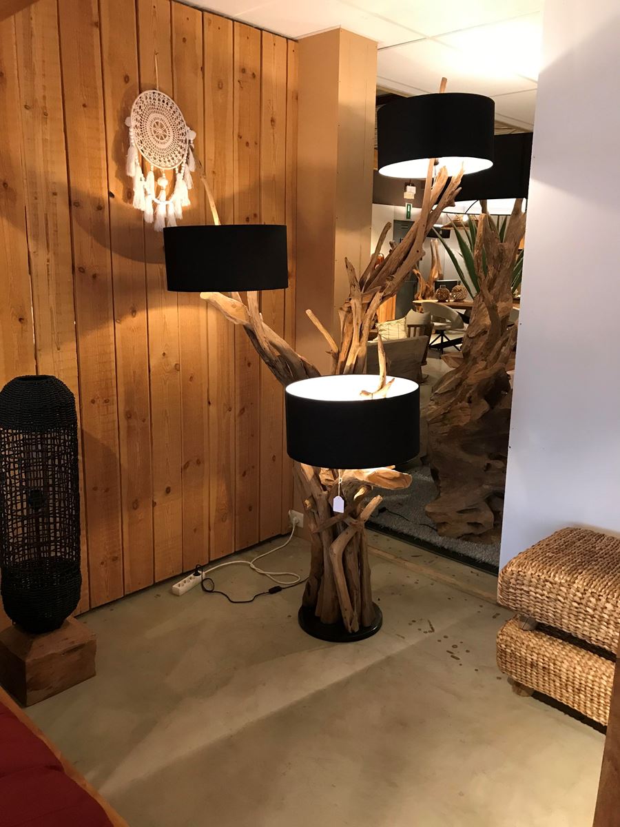 lampe en teck avec 3 abat jour