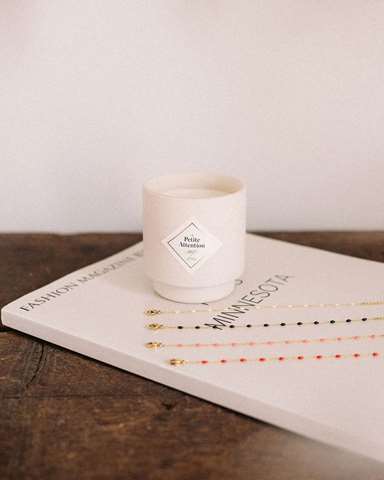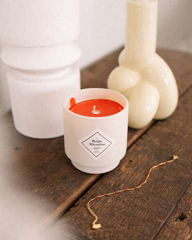 Pourquoi choisir entre une bougie ou un bijou, lorsqu'on peut avoir les deux ? Une fois la combustion entamée, les notes florales et poudrées de cette bougie révèlent peu à peu un bracelet fin et délicat, à porter du côté du coeur. C'est la petite attention qui compte.