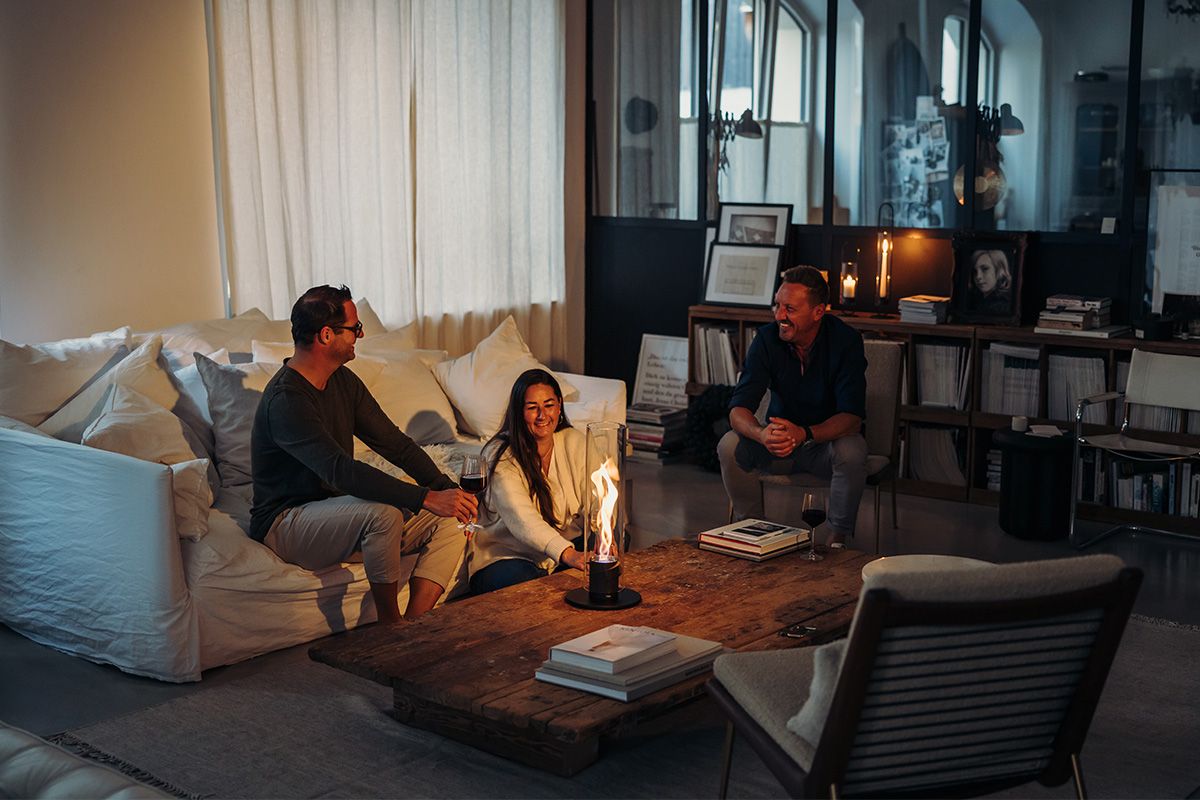 SPIN - La chaleur réconfortante et la convivialité sont les caractéristiques uniques du feu qui nous fascinent depuis toujours. SPIN conserve précisément cette atmosphère unique de feu de camp de façon spectaculaire dans un cylindre en verre. Le feu de table fait briller votre balcon, votre terrasse, votre salon ou votre table à manger de la douce lumière des flammes.