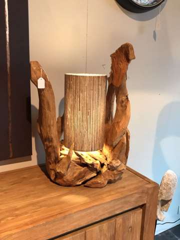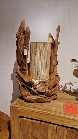 Lampe en teck avec 1 abat jour jacynthe d’eau