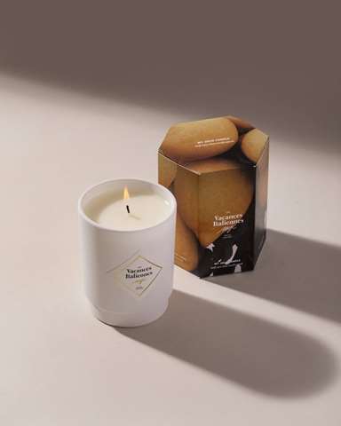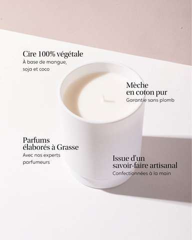 Une cire 100% naturelle à base de soja, mangue et coco, délicatement parfumée dans nos ateliers de Grasse, en collaboration avec des nez experts. Une fois allumée, la mèche en coton pur diffuse les notes typiques acidulées, un peu boisées, des Vacances Italiennes.