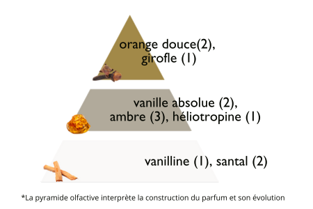 Enfin, la facette crémeuse du santal et la gourmandise de la vanilline apportent du sillage à cette vanille chaleureuse.