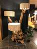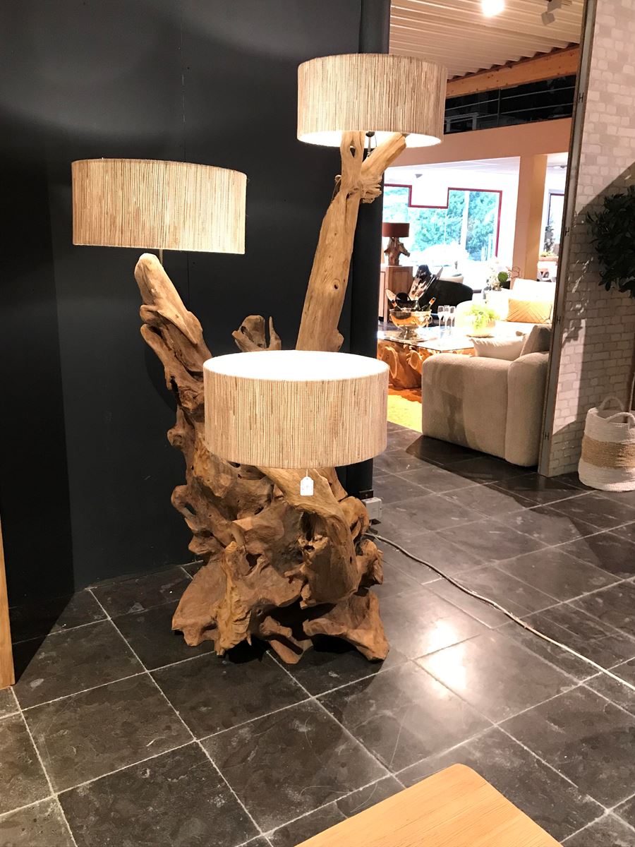 lampe en teck avec 3 abats jour couleur gris anthracite